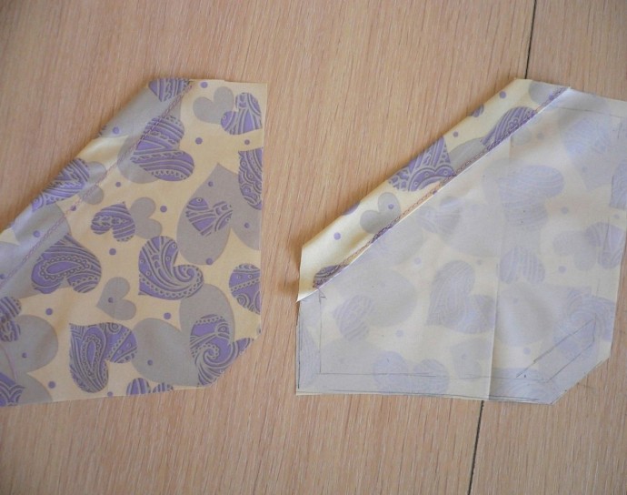Сделала складочку, закрепила, все обвела и вырезала с учетом припусков.