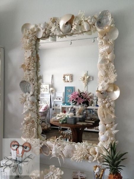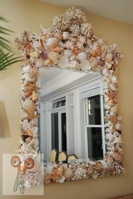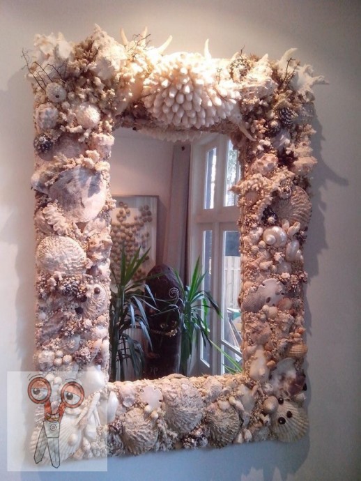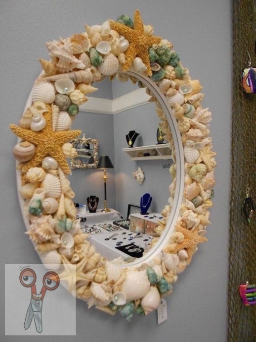 Украсьте рамку даже простого зеркала ракушками и морскими звездами - и оно станет главным предметом интерьера благодаря своей красоте.
