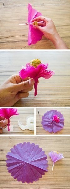 Создаем букет из конфетДля создания букета из конфет вам понадобится:1. Флористическая тейп-лента.2. Клеевой пистолет.3. Ножницы.4. Гофрированная бумага.5. Шпажки.6. Конфеты.7. Пищ...