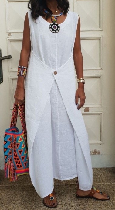 Простое в пошиве платье оригинального кроя можно дополнить яркой нижней юбкой, которая будет видна ниже края платья.