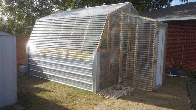 Теплица с тамбуром из профилированного поликарбоната и металлопрофиля