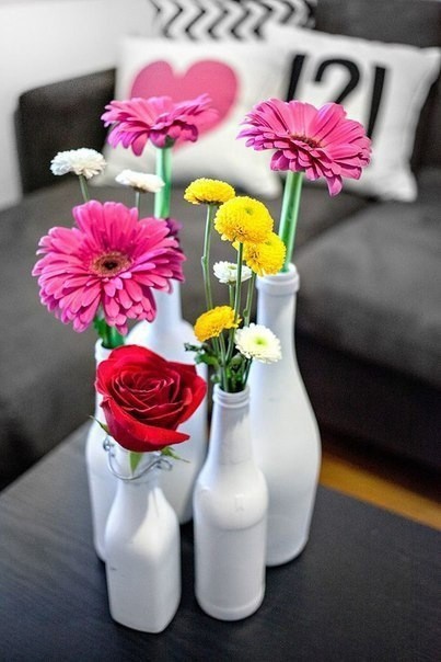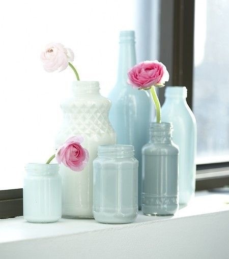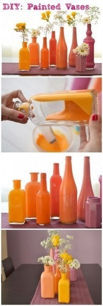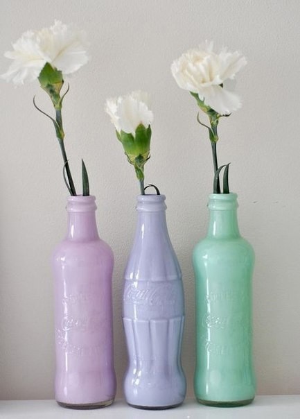 Такой способ декорирования превращает ненужные бутылки и банки в вазы.