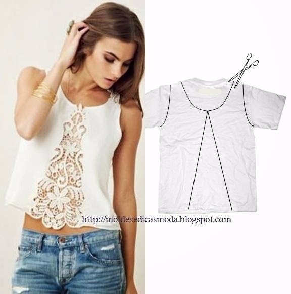 Дополните футболки кружевами или чуть измените фасон - и перед вами красивые блузки.