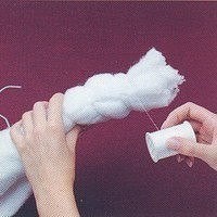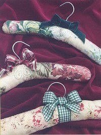 2. Обмотайте набивочный материал вокруг плечиков, а затем не туго обмотайте ниткой. Продолжайте обмотку, пока набивочный материал полностью не закроет плечики. Срежьте излишки материала. вешалка-плечики