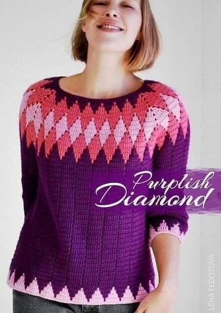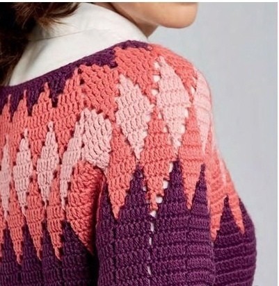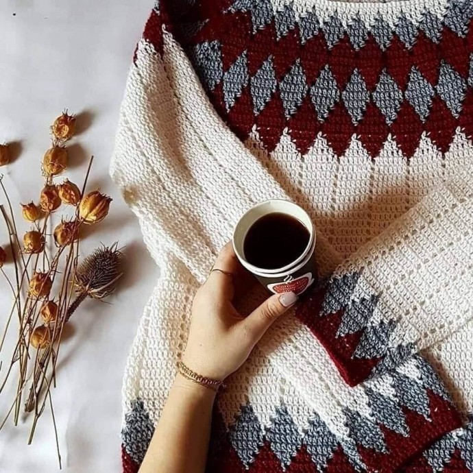 Оригинальный джемпер с ромбами крючком