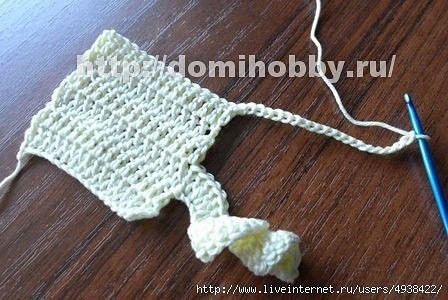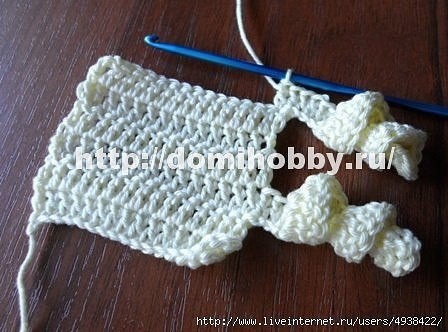 Рассмотрим пример вязания розочек с промежутком по боковой стороне, его можно использовать при вязании полочек кофточки или для украшения боковой стороны любого другого изделия, например шарфа.