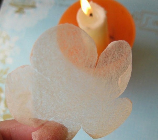 Цветочки из флизелина получаются тонкими, воздушными и полупрозрачными.