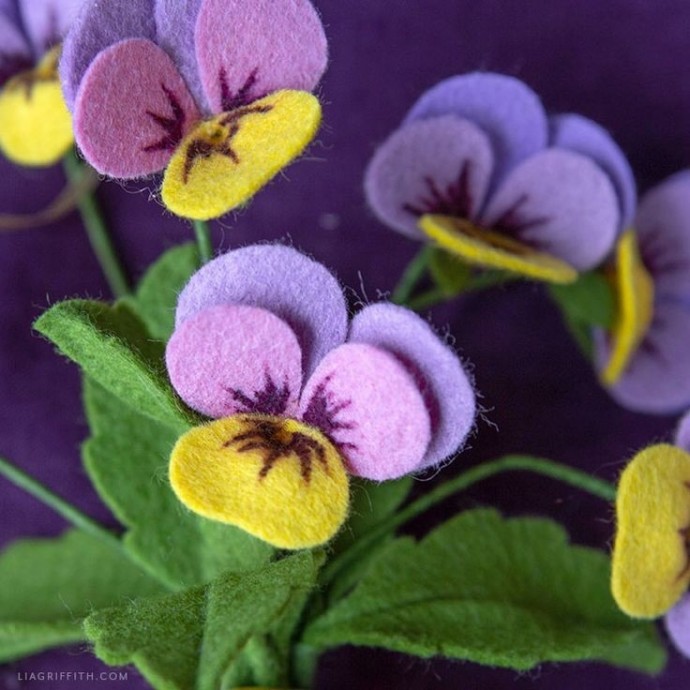 Цветы из фетра: анютины глазкиФетр самый благодатный материал для творчества: плотный и с неосыпающимся краем.