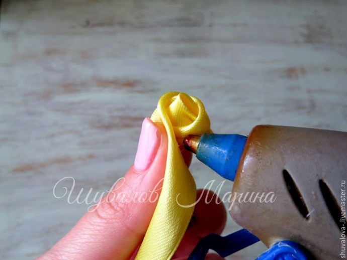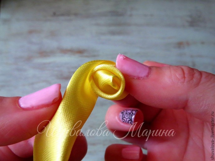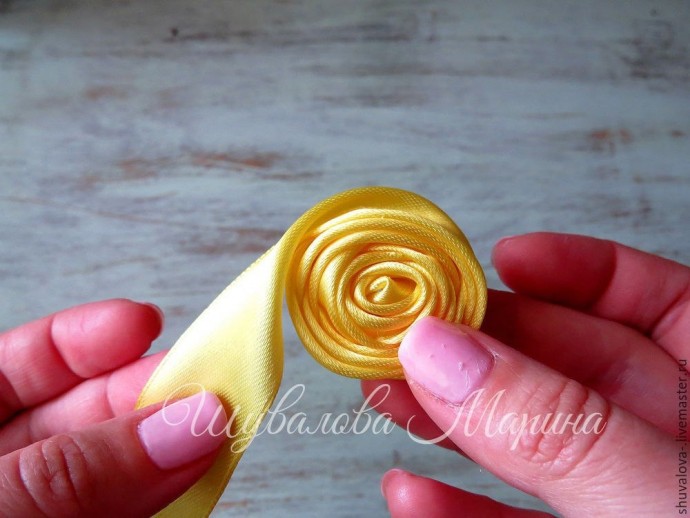 Большие розочки из широкой ленты получаются особенно красивыми.