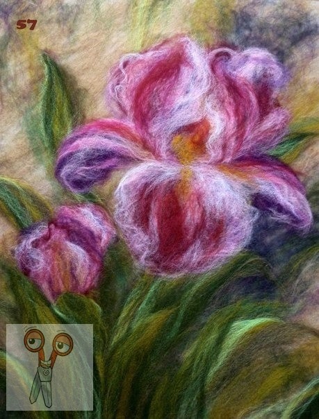 Сложно сказать, чья красота окажется больше: живых ирисов или выполненных в это технике.