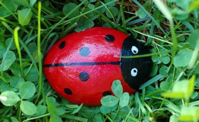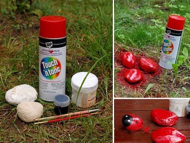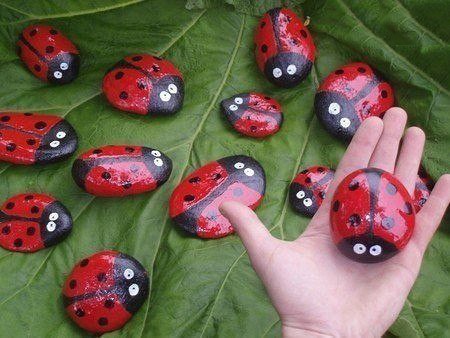 Божьи коровки из гальки для декора сада