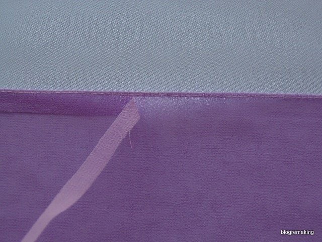 Рассмотрим технологию выполнения московского шва на примере шифона, для наглядности я буду использовать нитки контрастного цвета.