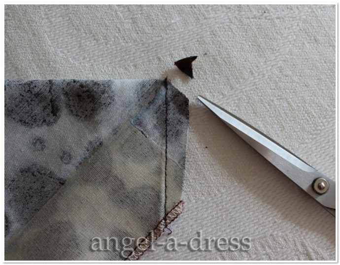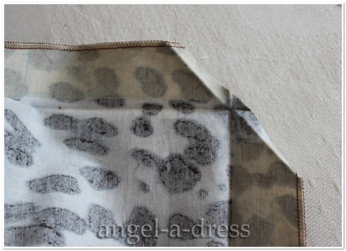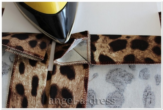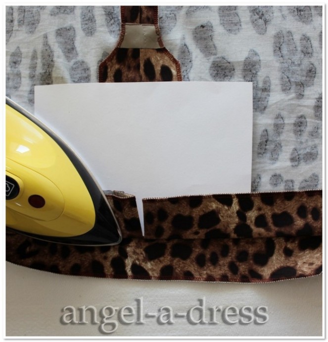 Кусок картона нужен, чтобы наметить ровную длину уголков. Все линии стачивания также намечены при помощи горячего утюга.