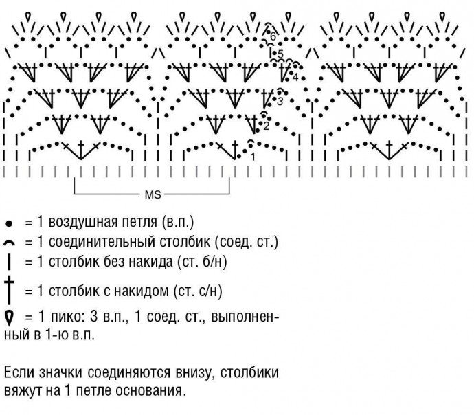 Кружевной узор крючком на 12 петлях Вязать по схеме. Круг.р. начинать и заканчивать, как показано.
