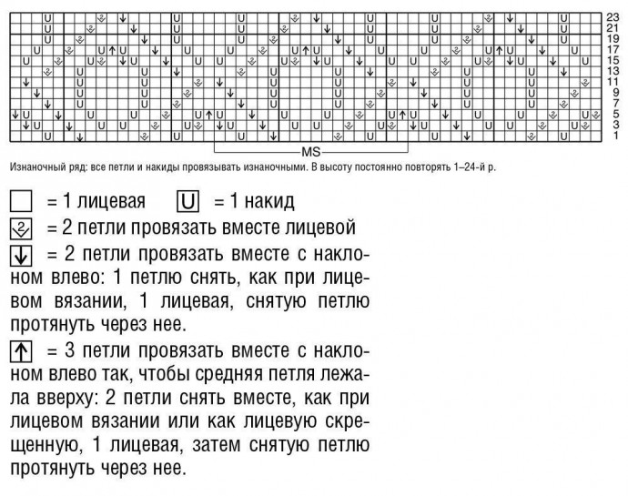 Начать с петель перед раппортом, раппорт постоянно повторять и закончить петлями после раппорта. В высоту постоянно повторять 1–24-й р.