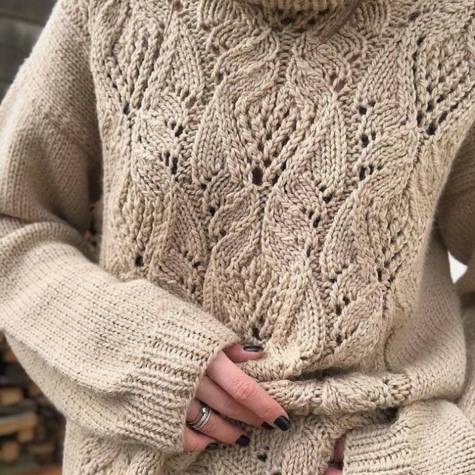 Восхитительный узор спицами позволяет создавать красивые вещи, которые очень нарядно выглядят.