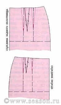 Прежнюю вытачку на заднем полотнище юбки перенесите на линию, расположенную ближе к линии середины. Прежнюю вытачку переднего полотнища - на линию, которая лежит ближе к боковому срезу.