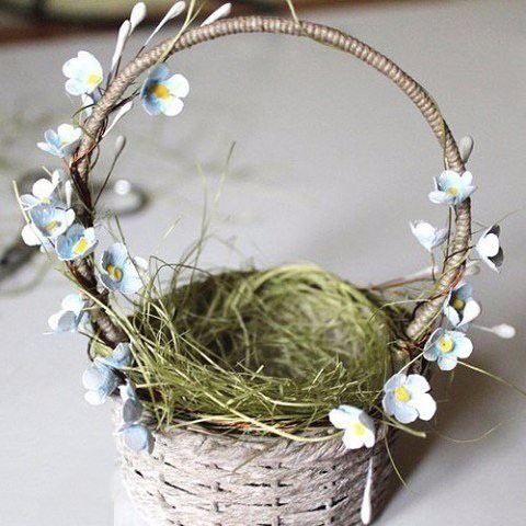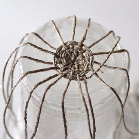 Выберите посуду подходящего размера и нравящейся вам формы - и на этой основе сплетите корзинку из джута.