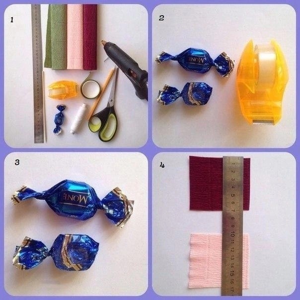 Варьировать размер бутонов можно подбирая конфеты разного веса.