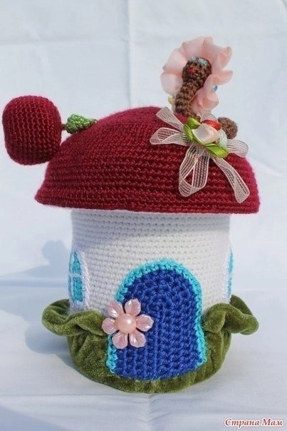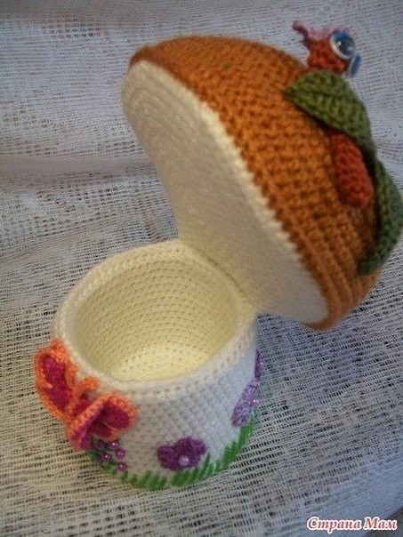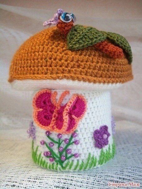 Шкатулка-игольница в виде гриба с откидывающейся крышкой изготавливается из картонной втулки достаточно большого размера.