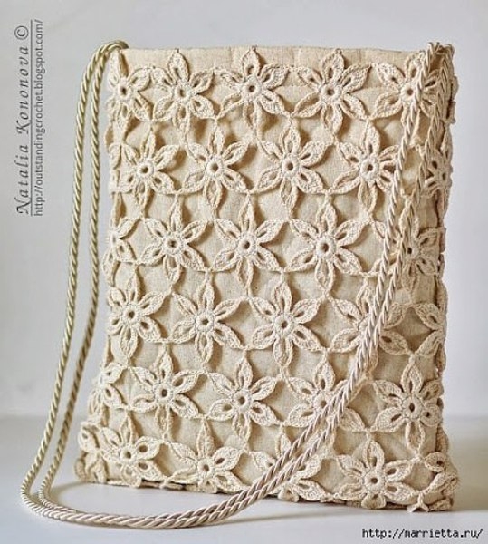 Сумочка крючком из мотивовИспользованы ромбовидные мотивы, сшитые вместе.