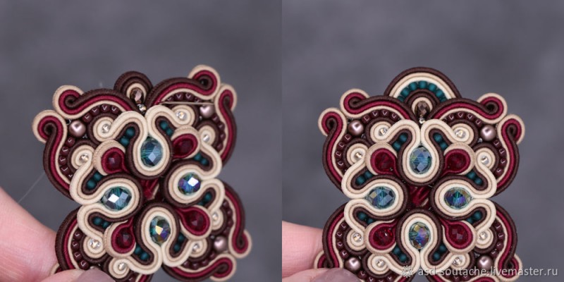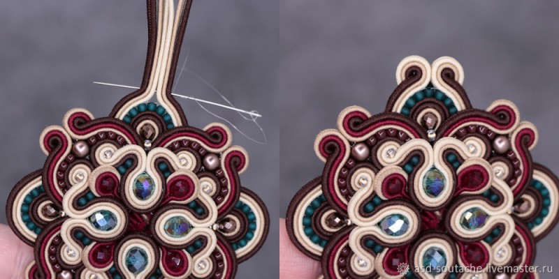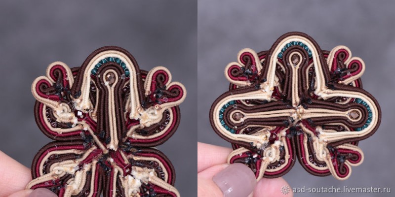 Главное и, по сути, единственное требование — изнанка должна быть аккуратной! Так как сутажные украшения в принципе не могут быть плоскими, то по возможности она должна быть ровная и без бугров. Один из способов формирования такой изнанки мы сегодня рассмотрели.