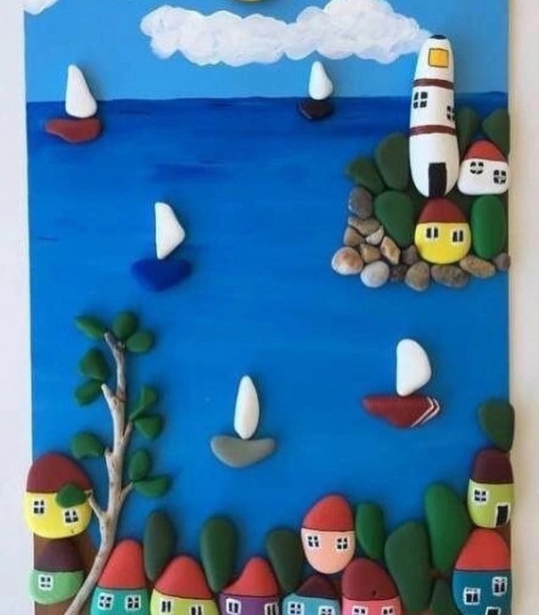 Сюжеты картин из разукрашенной морской гальки ограничены только вашей фантазией.
