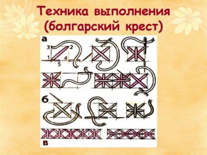 При вышивании подряд полностью выполняют один, затем переходят к другому.