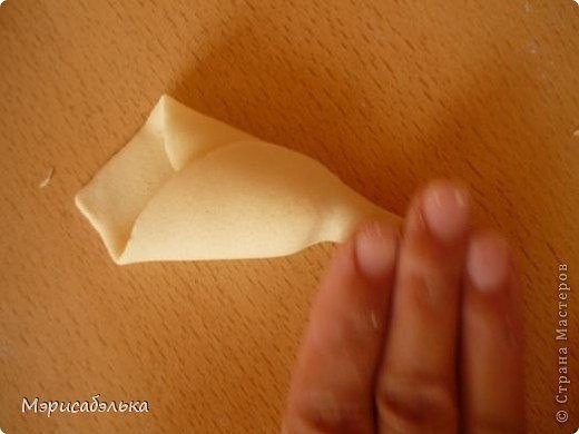 Затем такую лепешку прокатываем, сворачиваем, можно на пальце