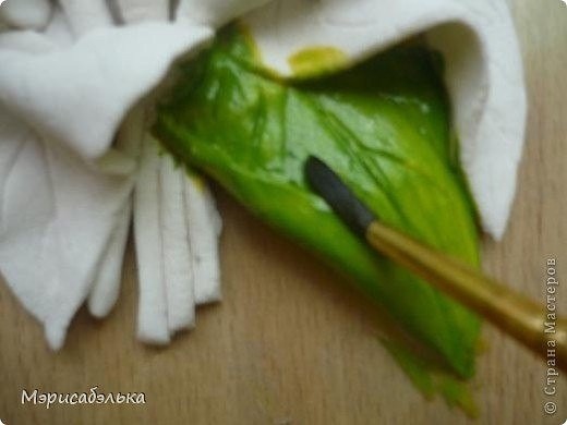 Хорошо отжатой кистью легонечко вытираем зелену краску