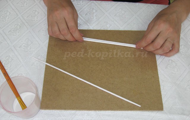Края  склеенных трубочек срезаем под углом 45 градусов