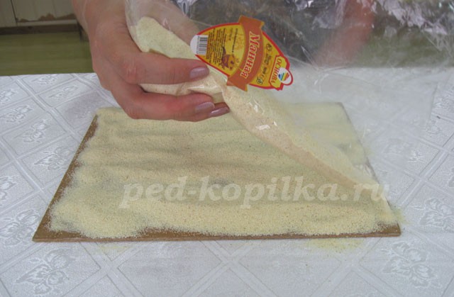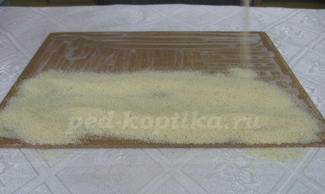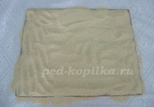 И вот, наша основа подсохла, осторожно ссыпаем остатки манной крупы