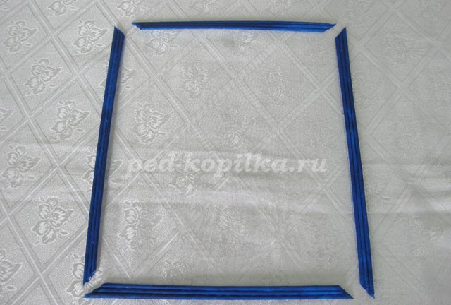 Мы подошли к заключительному этапу. Приклеиваем на клей ПВА элементы рамки. Каждую сторону надо немного придержать, для более прочного скрепления.