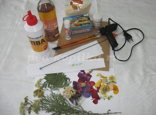 • заранее заготовленные и засушенные любые полевые и газонные цветы и травы;