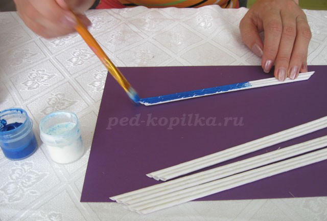 После высыхания лака приступаем к покраске основы акриловой краской, цвет так же выбирается мастером по желанию