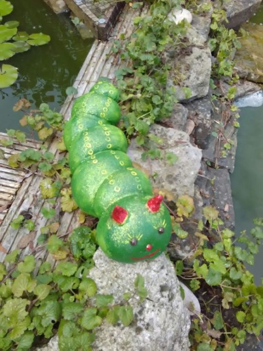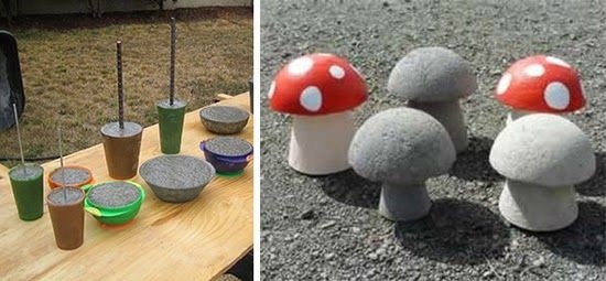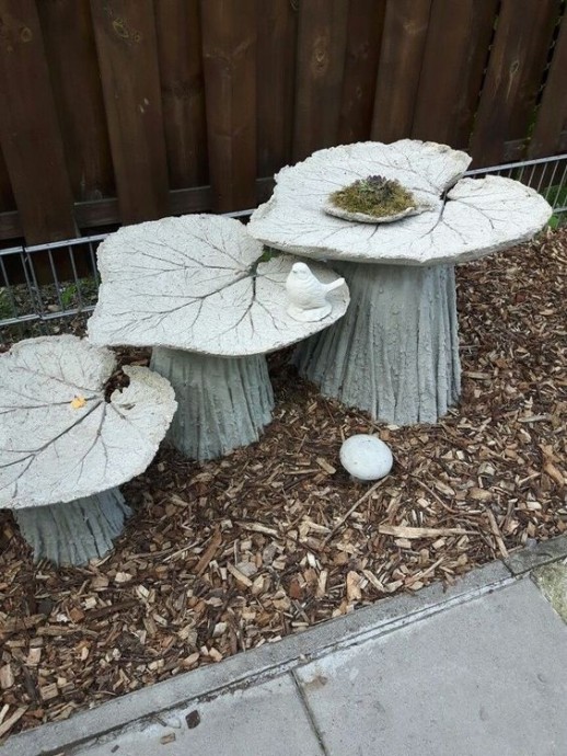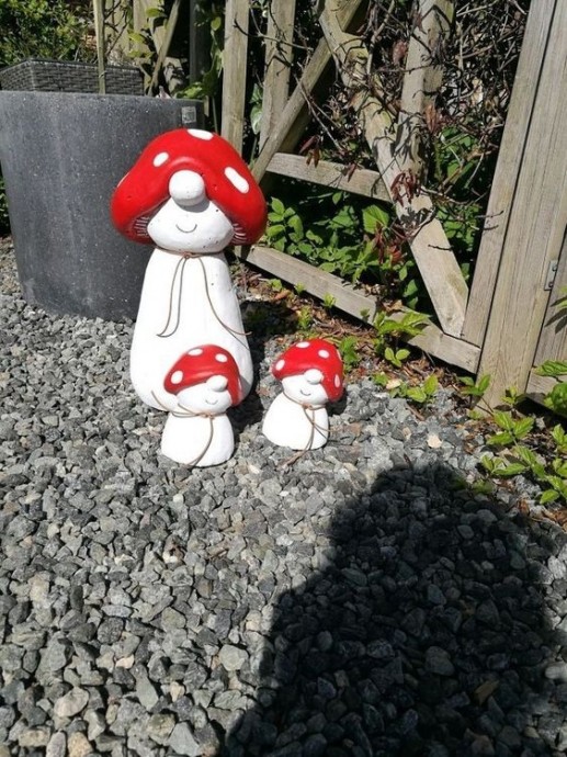 Садовые фигуры создаются из цемента и ткани.