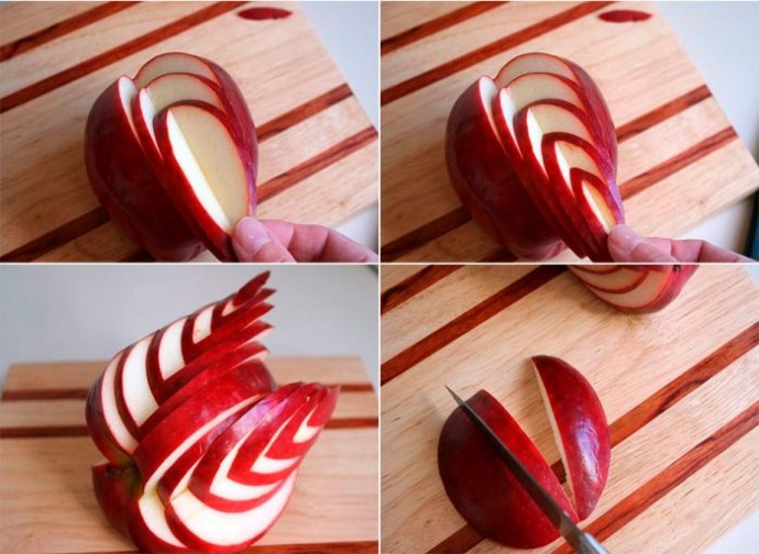 Выложите дольки на яблоке, начиная с самой большой закончив самой маленькой долькой.