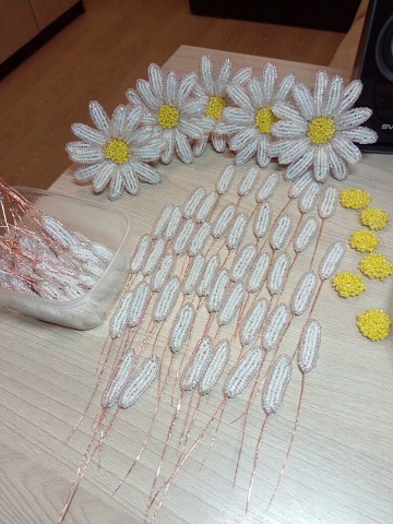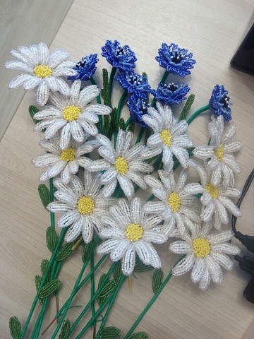 Цветочная композиция из бисера и рубки