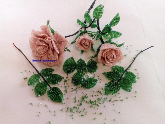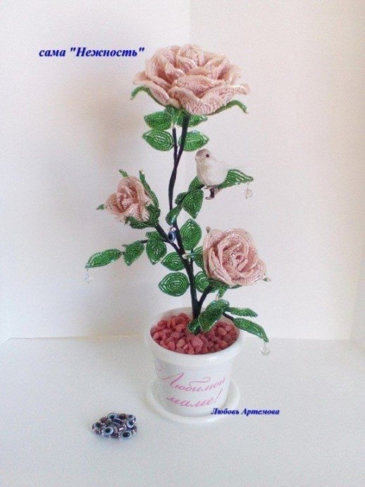 Роза из бисера "Сама нежность" от автора Любови Артемовой.