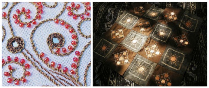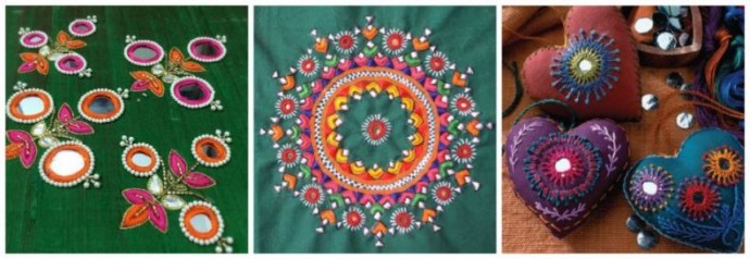Для того чтобы самостоятельно освоить технику вышивания шиша, первым делом нужно научиться обрабатывать нитями и прикреплять зеркала к ткани. Существует множество самых разнообразных способов вышивки, например, непосредственно по элементу или только по его краю.