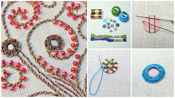 Первоначально в вышивку добавляли осколки слюды, позже ее сменило стекло и зеркальца. Современные вышивальшицы шиша часто используют пластик или, например, разрезаные СD-диски. В качестве основы для вышивки берут плотные х/б, шелковые и шерстяные ткани.