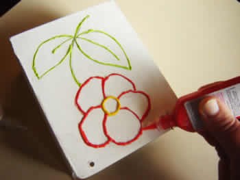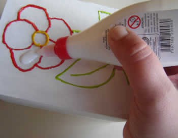 Дайте высохнуть немного, прежде чем применять в соседних областях. Если вы хотите -можете оставить пустые места на рисунке, только применяя клей.