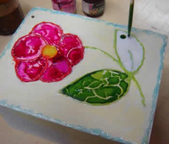 Иногда краска втягивается, вызывая небольшие пятна и разрывы, тогда повторите применения клея и витражной краски.