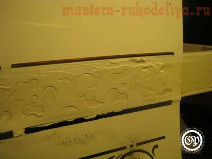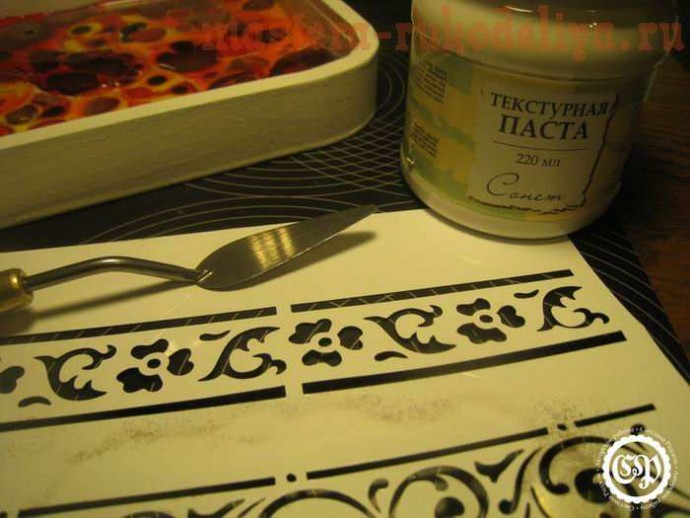 Для оформления стенок я использовала текстурную пасту Сонет и трафарет.