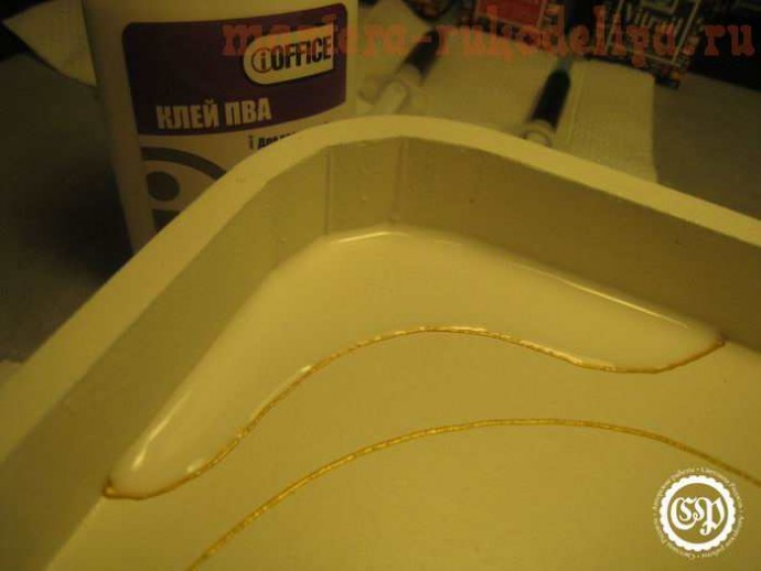 Заполняем первый сегмент клеем ПВА. Я клея не пожалела, о чем потом пожалела, когда ждала высыхания работы.