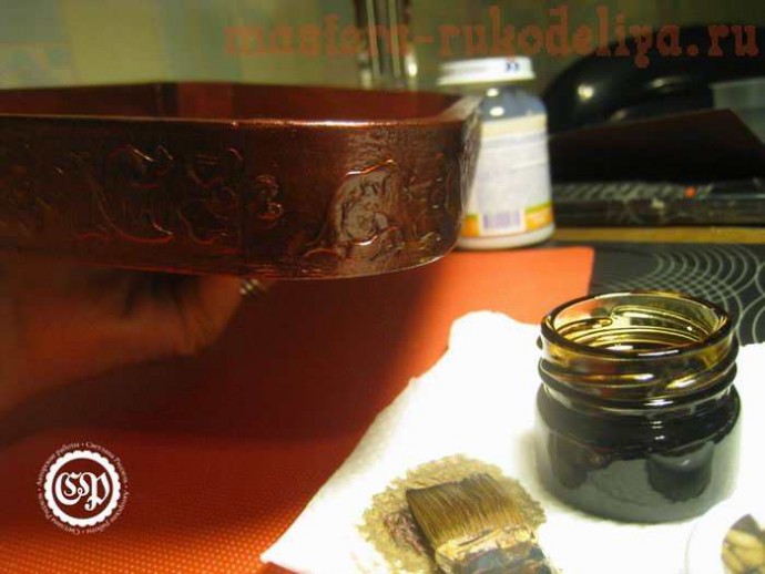 Затемняем битумом (показалось, что цвет слишком яркий).