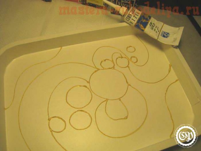 Контуром для стекла набрасываем будущий орнамент.