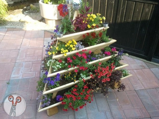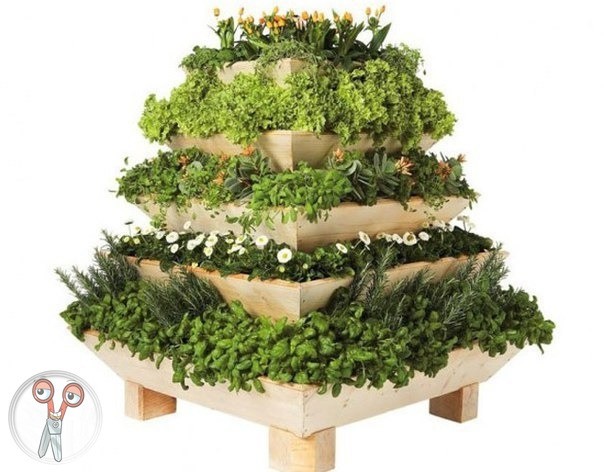 По этому принципу можно делать многоярусные клумбы прямоугольные, ромбовидные и многогранные.
