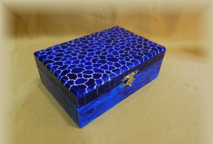 Jacarelado – модное направление в рукоделии. Перевод очень четко передает ощущения от взгляда на такие работы: необыкновенное нанесение красок при высыхании создает эффект кожи крокодила. А форма расположения капель краски – мозаичный рисунок.