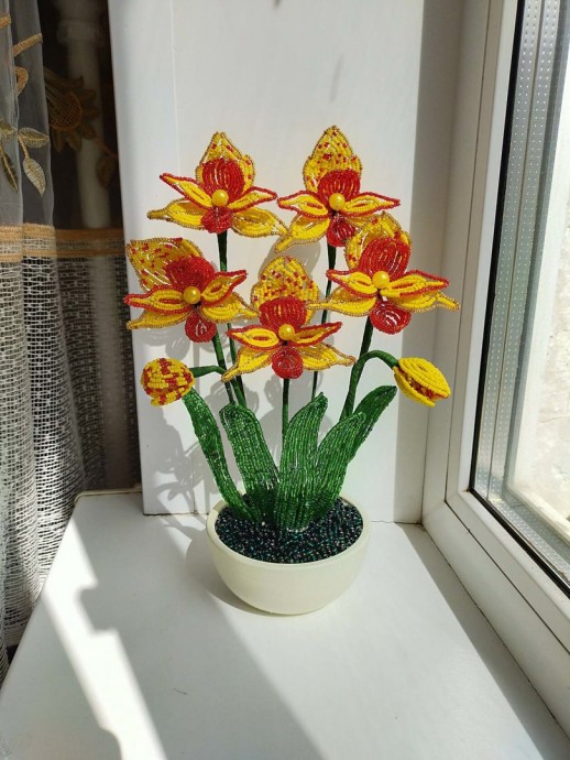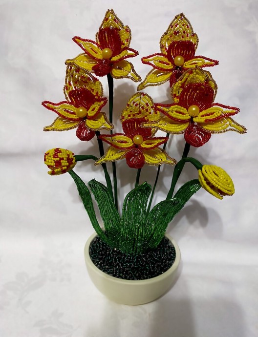Чудесные орхидеи из бисера для тех, у кого не хотят цвести живые.Совершенно не капризны и очень красивы.